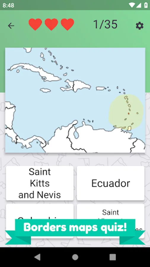 Guess country name by its borders map and prove that you mastered Americas geography. Caribbean archipelago islands countries are extra tricky to name!