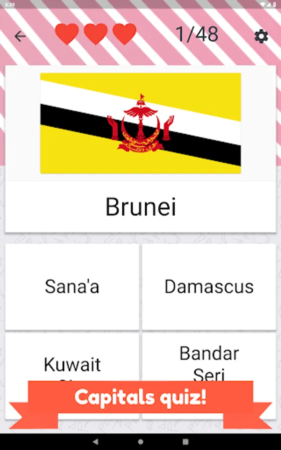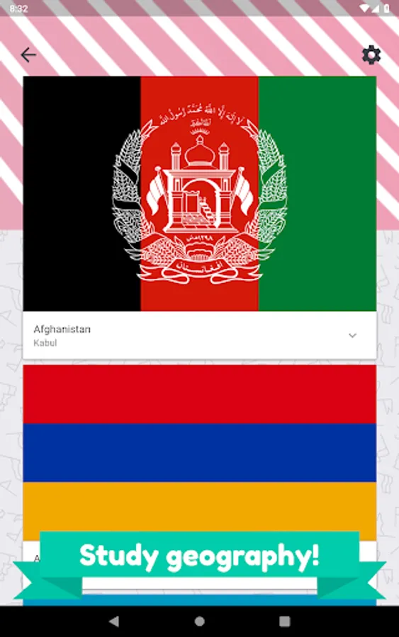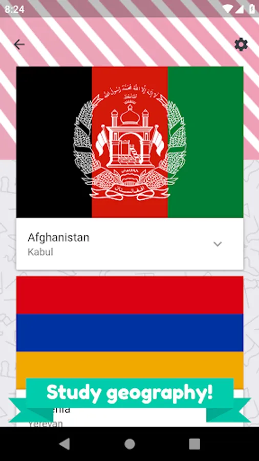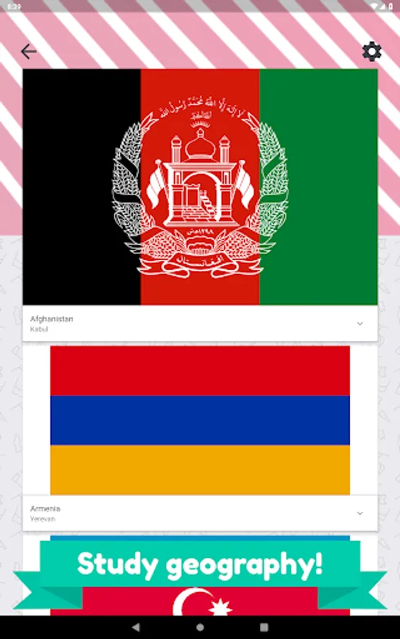 Flags of all asian and eastern countries and names of its capitals. You can guess country name or capital by its flag image and vice versa.