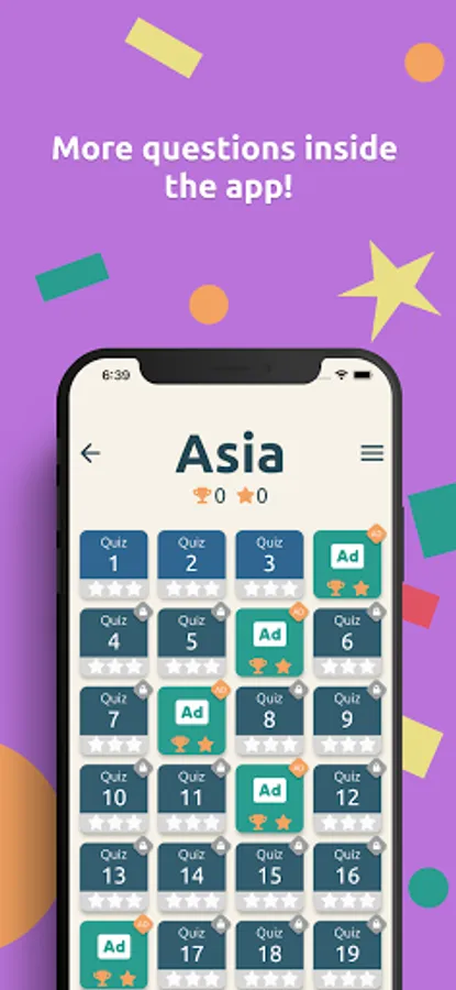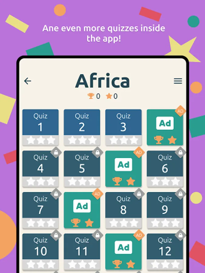 A little bit of challenge makes everything better! In this World Quiz app, we offer you a fair challenge: quizzes at the beginning are quick and easy, but with every completed quiz a new, more difficult quiz will be unlocked. We dare you to complete them all!