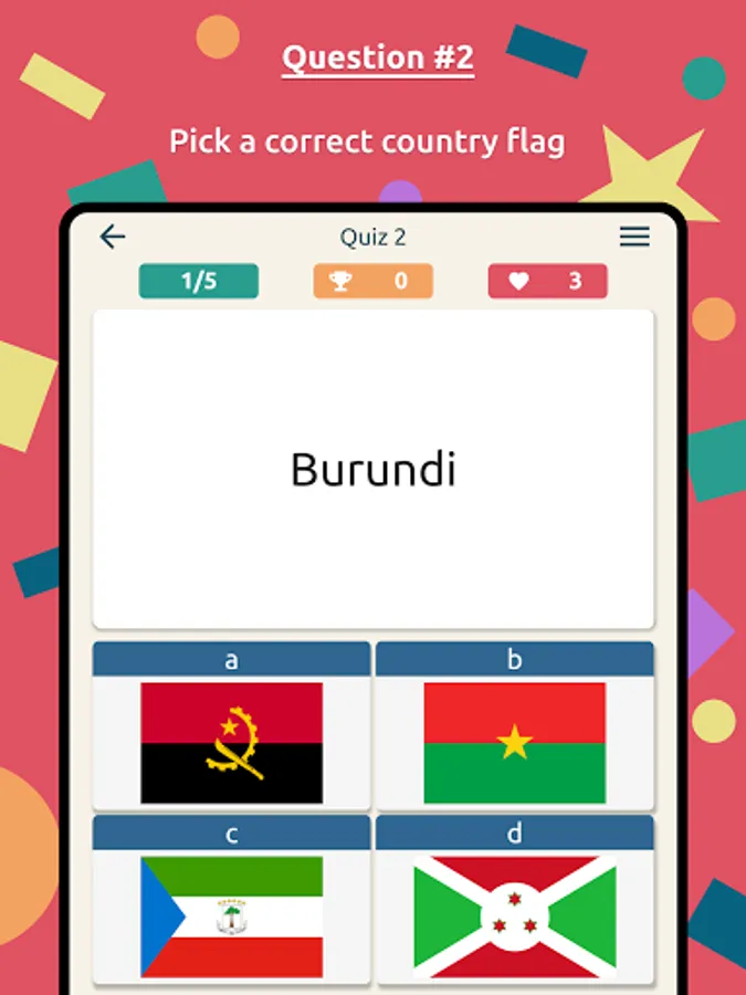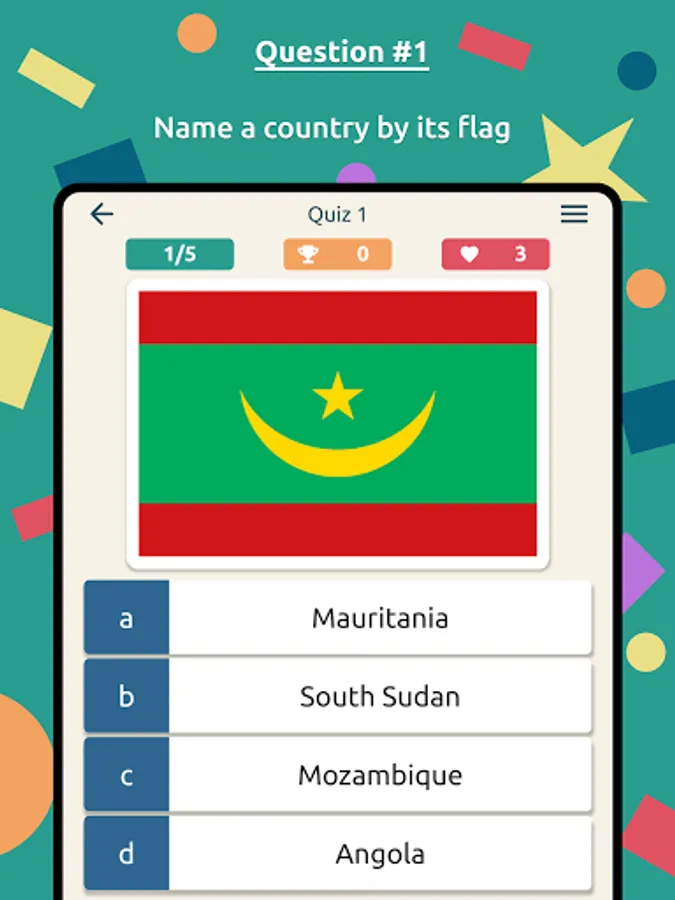 Are you planning to increase your knowledge about world geography, flags and countries? How about taking a World trivia to increase your general knowledge and have fun? With this amazing geo quiz app, you can not only learn about the general World geography but also but also enhance your knowledge about different world regions and countries, their flags and names. From exciting new quiz modes and multiple flag quiz styles to an appealing graphics and multi-device compatibility, this World Quiz is full of fun and exciting new things to learn!
