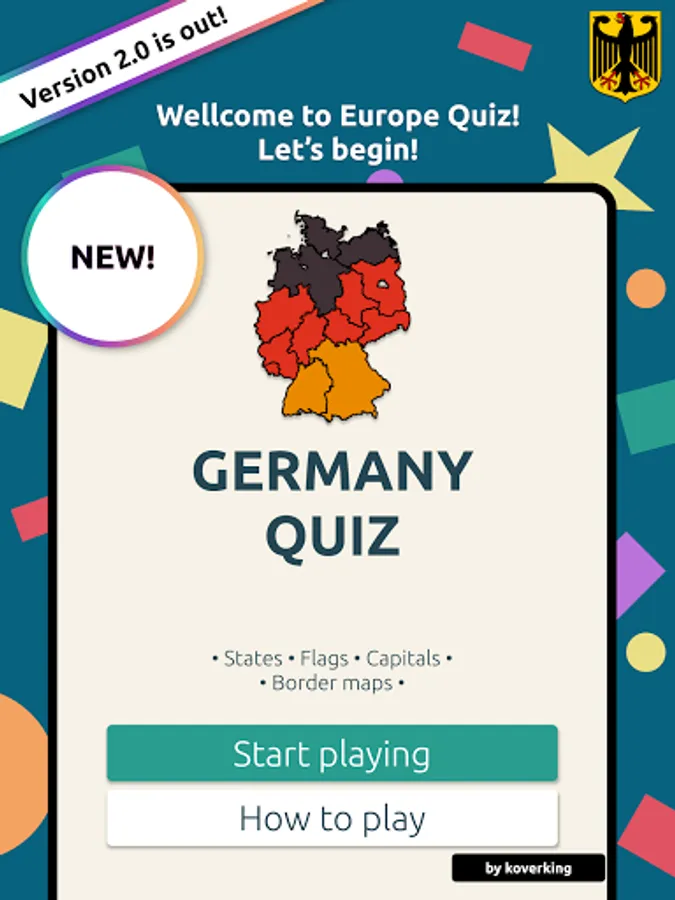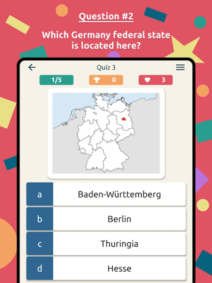 Do you think you have got enough knowledge about Federal Republic of Germany geography, regions, countries and flags? Let’s test your knowledge with this amazing geography quiz app. Use the different learning modules as a training ground to test and refine your general knowledge. Have fun with your friends or prepare for a test on Germany geography effectively!
