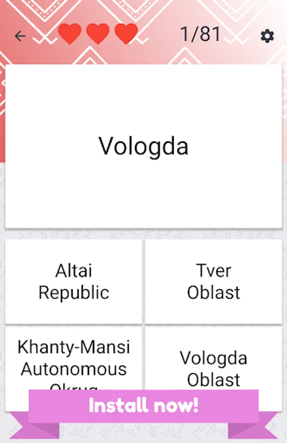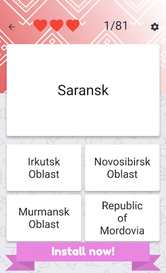 We have 4 different quiz types and more then 100 of questions about Russia Federation in total!