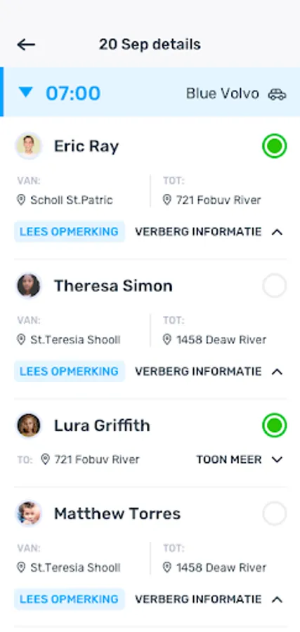 The BSO employee can use the app to see exactly which child she has to pick up at which school and with which means of transport.