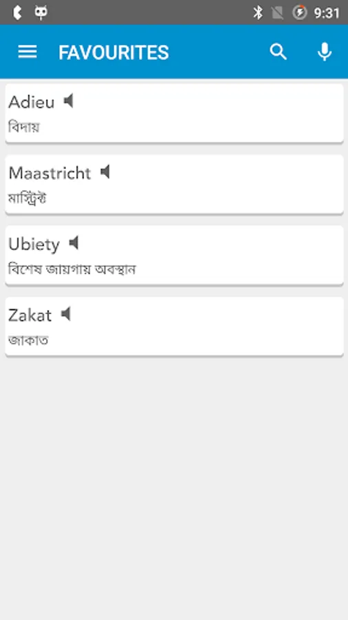 - Favorite: list your most favorite Bengali words so that you can access them at one go,
