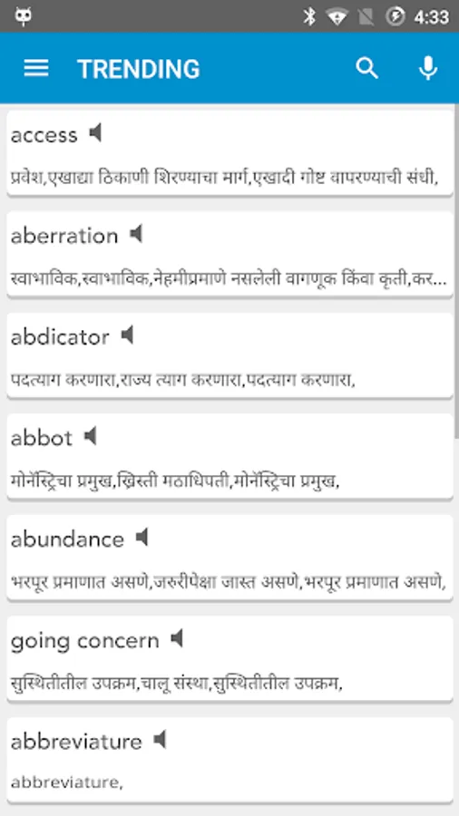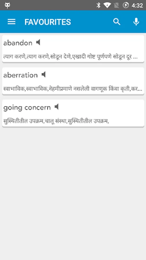 - Favorite: list your most favorite Marathi words so that you can access them at one go,