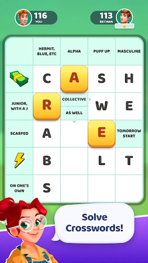 Finally, a new way to crossword! Play the fun, brand new crossword game that lets you solve puzzles at your own pace, while playing against an opponent!