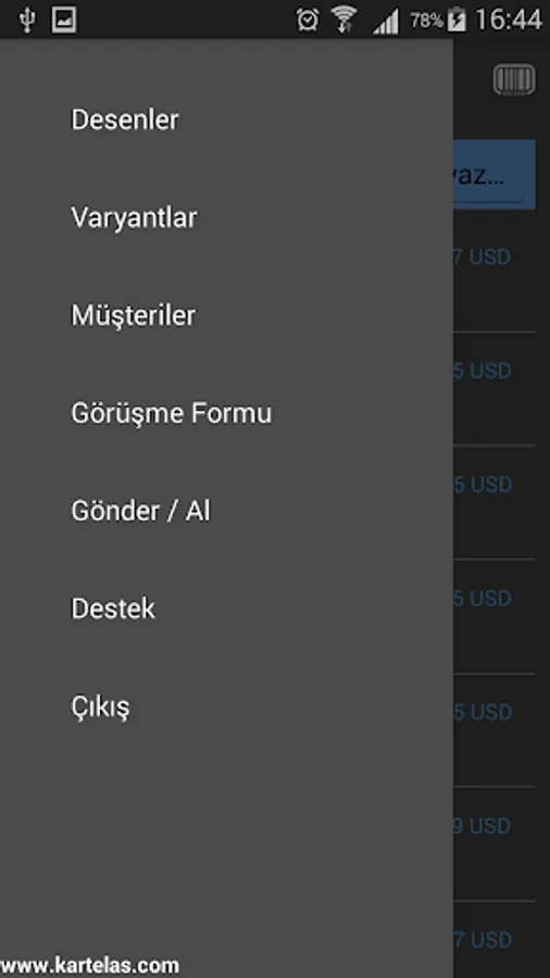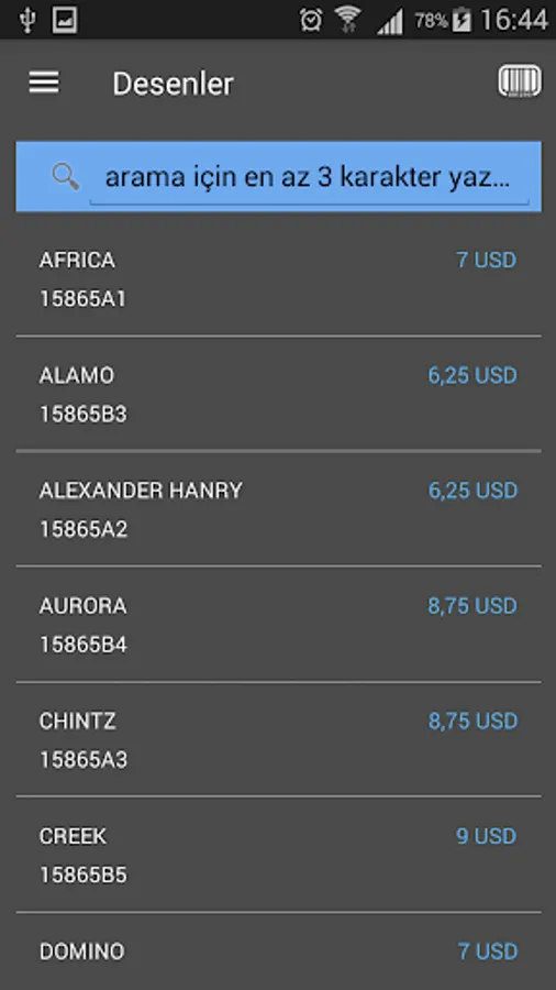 The target mass of our application is the companies that sell fabric. The sales teams of companies sell their products by visiting customers or prospects on site. At the same time, they use price lists and product cartels in their hands to give customers detailed information about their products and price. Information about the price and product details for the customer's favorite cartel can be transmitted to the customers very quickly by reading the product barcode or data matrix via Kartelas mobile application.
