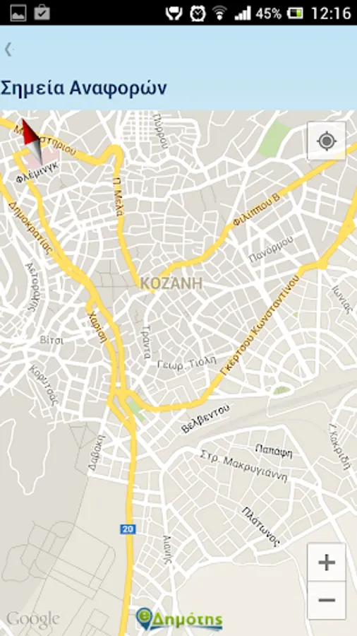 The e Citizen is an application of the municipality Kozani smartphones that captures, in an easy way, well and wrongs of the city through the users' input.