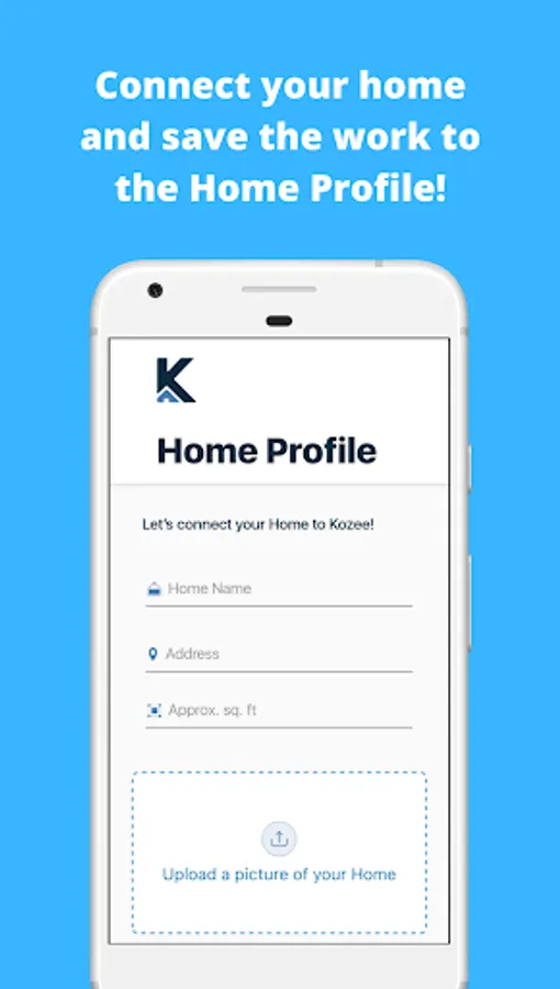 STEP 1. CONNECT YOUR HOME. Once you add your home to Kozee, all of your work will be saved to your home forever. Easily reference your repairs and get recommendations on what repairs to make next. Moving? Transfer your work to the next homeowner easily with a click of a button. Your new home file folder is now digital!