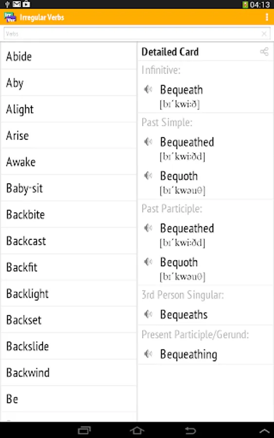 You can search the list of the required verb.