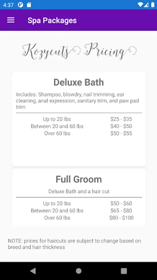Kozycuts app allows customers to create and manage appointments to get their furry pets groomed! Kozycuts is a small business that serves the Murfreesboro area in TN.