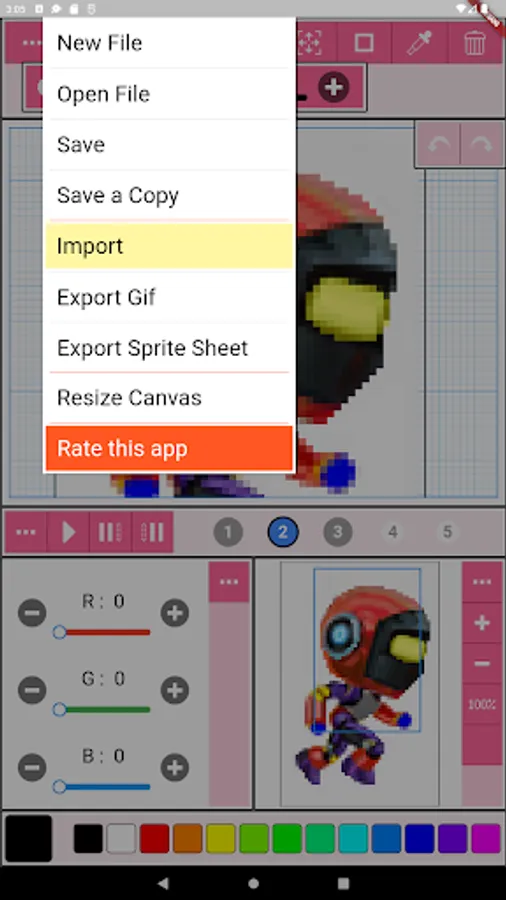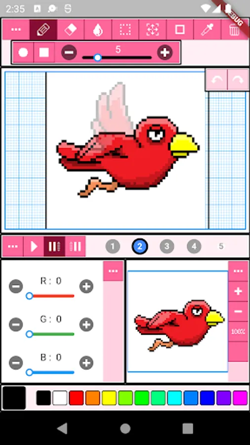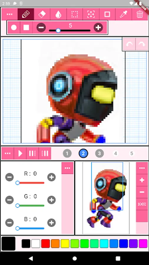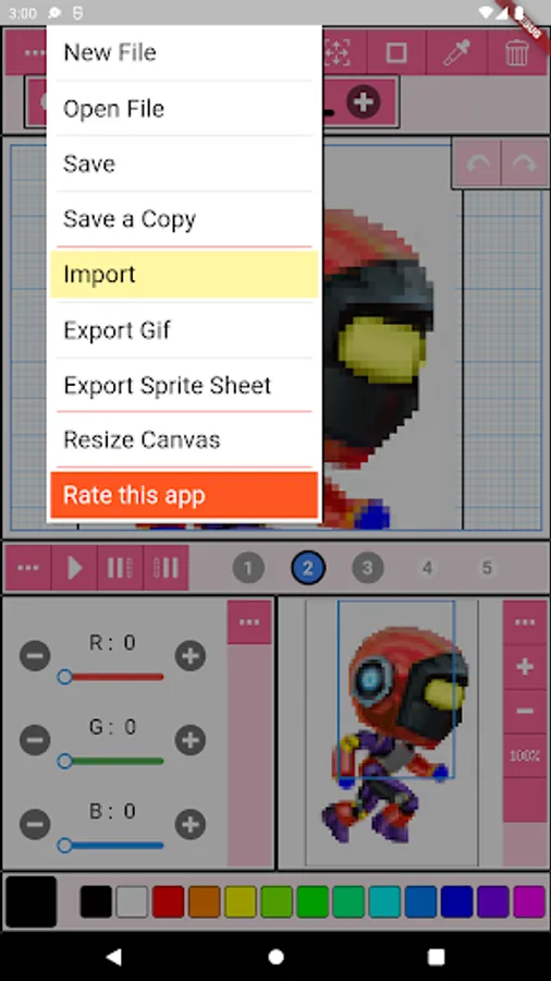 Pixel x Pixel is a user-friendly pixel art editor that allows you to easily create animations, and then export your creations as GIF animations or sprite sheets.