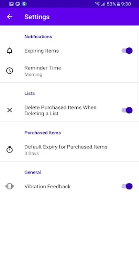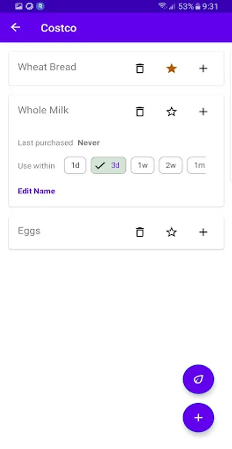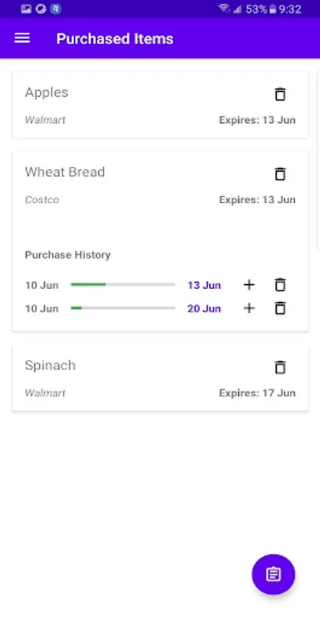 Use the Purchased Items page to keep tabs on your Groceries and never let them go bad or wasted because you forgot you bought it some time back.