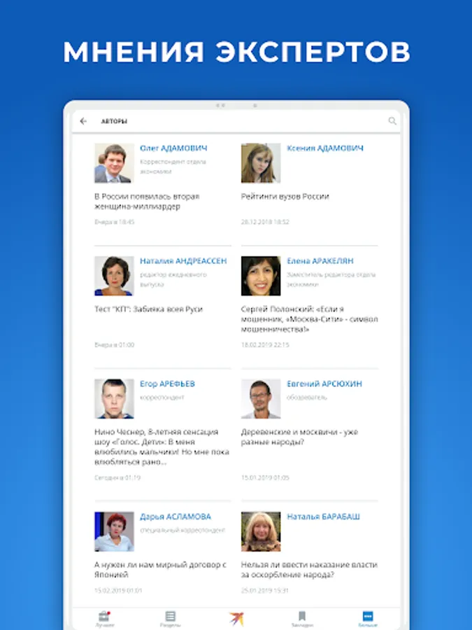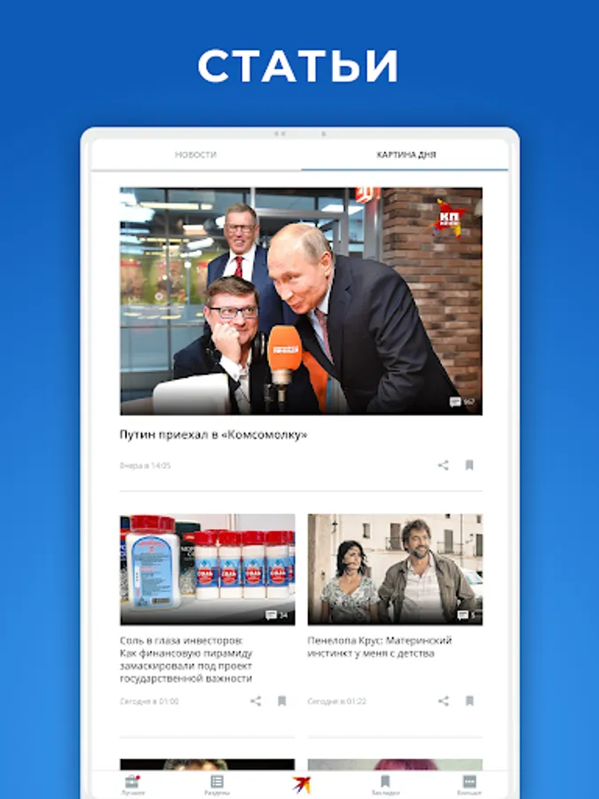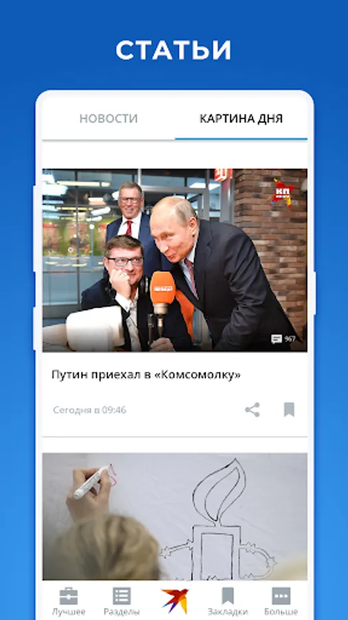 The official news application of the newspaper No. 1 of Russia "Komsomolskaya Pravda" and the Internet portal KP.RU.
