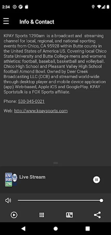 KPAY SPORTS KPAY-AM is a radio station located in Chico, CA within Butte County, USA. The station broadcasts on 1290AM, and is popularly known as KPAY SPORTS and streamed world-wide on http://kpaysports.com for local sporting events from Chico, CA within Butte County in the United States of America. Covering local Chico State University and Butte College mens and womens athletics: football, baseball, and basketball Chico High School and Pleasant Valley High School Almond Bowl. Including NFL NBA MBL, and Hockey, Owned by Deer Creek Broadcasting LLC (DCB) 2654 Cramer Lane, Chico, CA 95928 530-345-0021