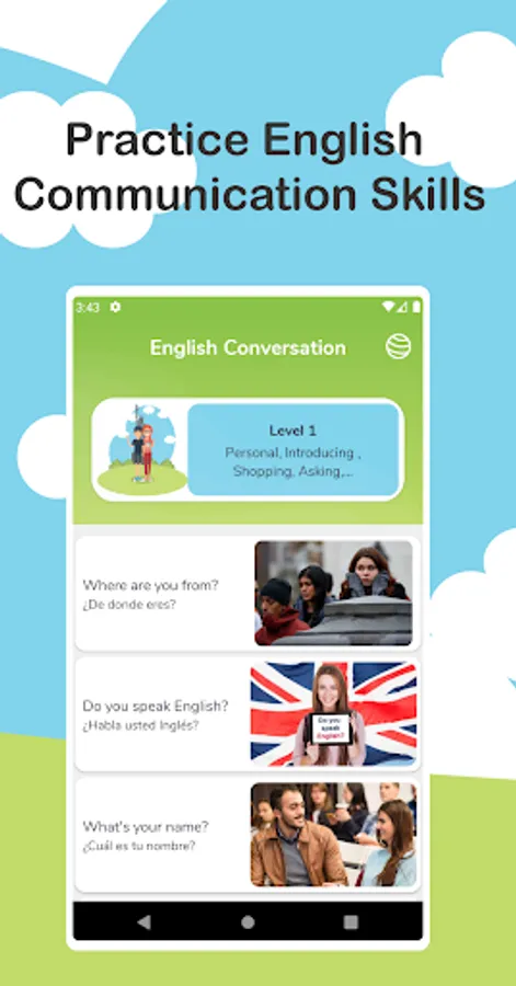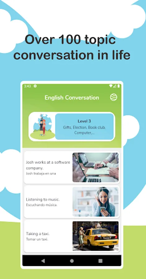 This is the best app to practice your English conversation. Come with us and start improving English today!