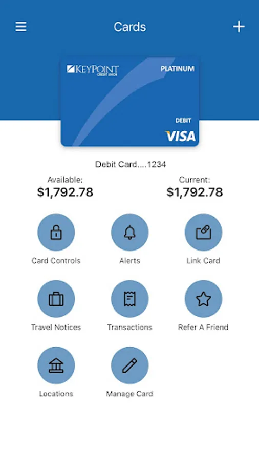 The KeyPoint Card Manager App gives you secure anytime, anywhere access to your KeyPoint debit and credit cards. This app can be used on its own or launched from the KeyPoint Mobile Banking app--once you are registered with a username and password.