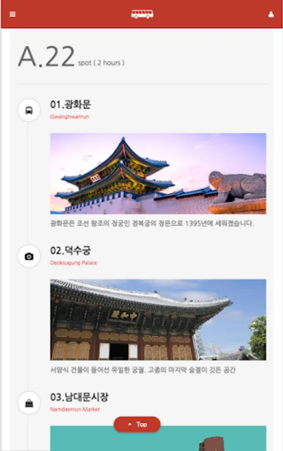 국내 최초로 도입된 시티투어 버스로서 매력적인 서울의 모습과 환상적인 고궁, 맑은 청계천등 매력적인 서울의 모습을 개인용 오디오 시스템 및 LCD모니터 시설이 갖춰진 1층 버스와 국내최초 유럽에서 직접 수입한 2층 관광버스를 이용하여 좀 더 편안하게 서울을 관광하실 수 있습니다.