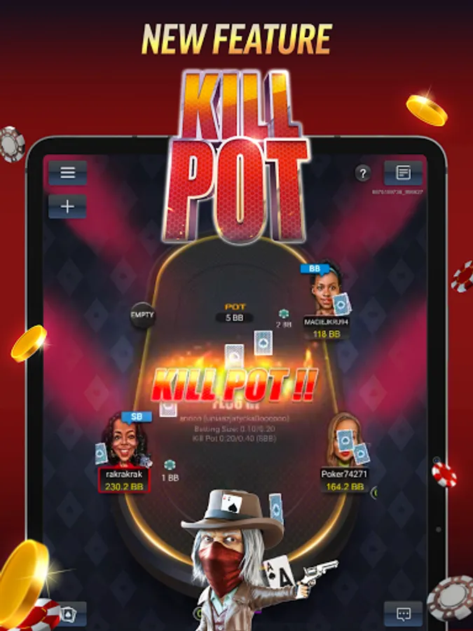 Pot Limit Omaha? No Limit Holdem? Open Face Chinese? Poker with friends is just a tap away for the ultimate social, competitive card game. Play poker with the Kill Pot feature enabled and watch limits double the hand after a pot grows over the size you choose.