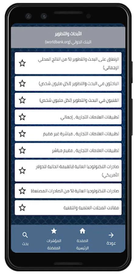 • Easy navigation through the list of indicators