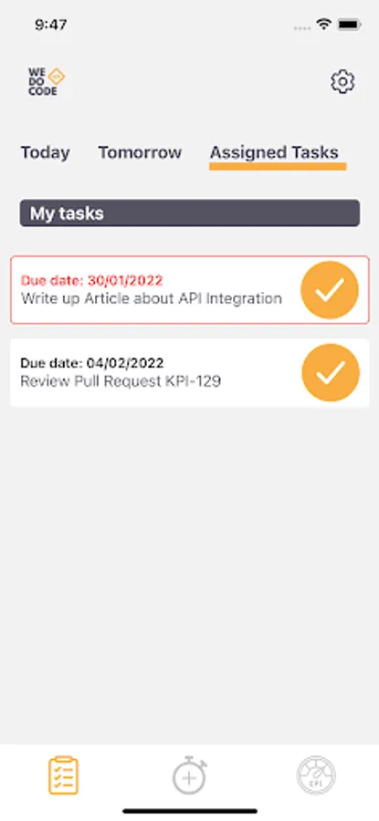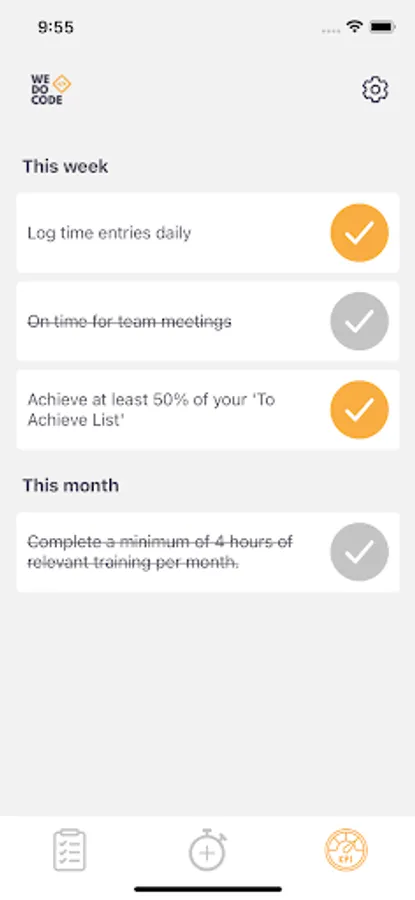 The We Do Code Project Tracker enables users to create, edit, and monitor their individual to achieve items, assigned tasks, and KPIs. You can add and edit time entries per project, add actionable items, view and complete assigned tasks, and monitor how you’re doing against predefined KPIs and utilisation rates.