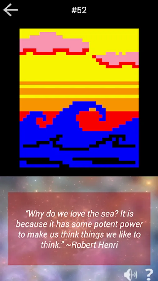 Finish solving to see the miniature picture that you have created. As an extra reward you get a quote related in some way to the picture. Witty or wise, it will give you a little something to think about as you go on to the next puzzle.