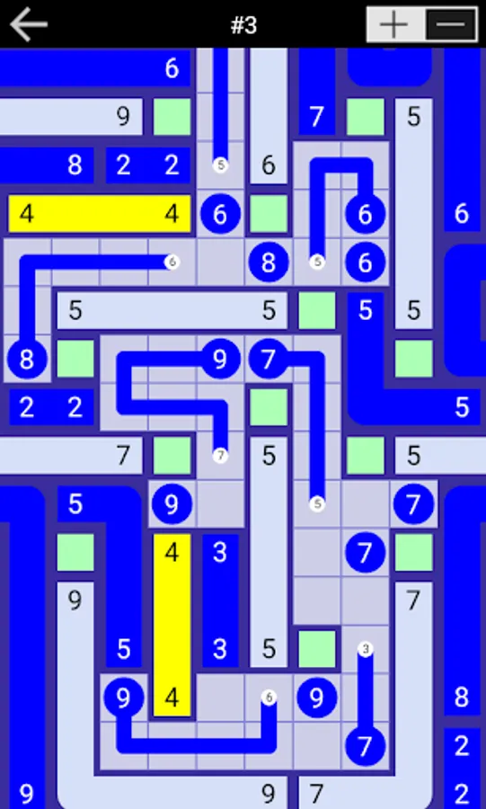 Draw bright, bold lines of color to make paths connecting pairs of colored numbers. The length of each path must equal the numbers you are connecting.