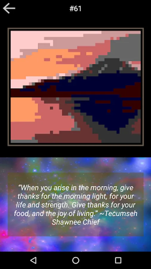 Finish solving to see the miniature picture that you have created. As an extra reward you get a quote related in some way to the picture. Witty or wise, it will give you a little something to think about as you go on to the next puzzle.