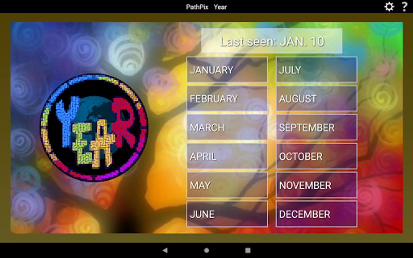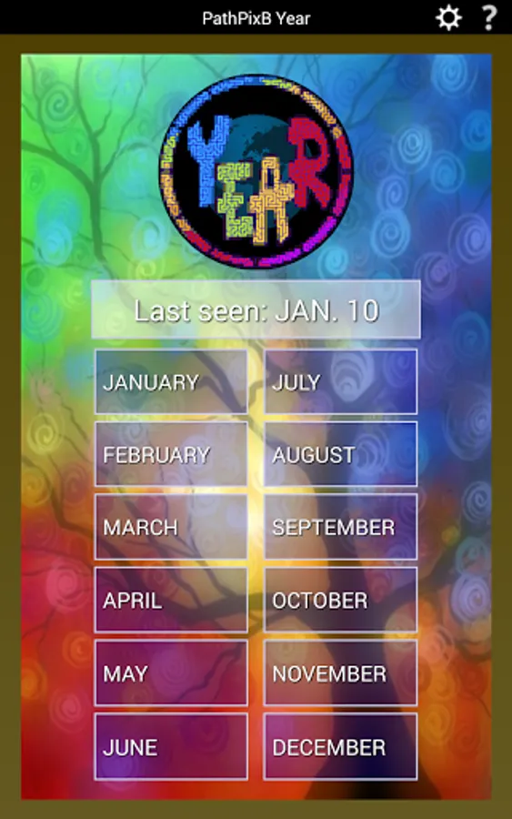 Wishing you had LOTS of new PathPix puzzles to play? PathPix Year has 365 puzzles, one for each day of the year. Celebrate the seasons, enjoy the holidays, find quirky quotes - PathPix Year has it all. A million squares to solve - 12 full months of puzzles. Each month includes a wide variety of puzzle sizes, puzzle shapes, and difficulty levels. Solve one puzzle a day or do them all as fast as you can - it's your choice!
