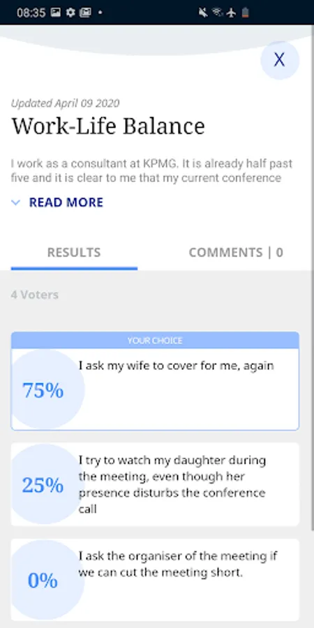 4. The organisation can monitor the aggregated responses and reactions and can see how many users responded to a dilemma and what their response was.