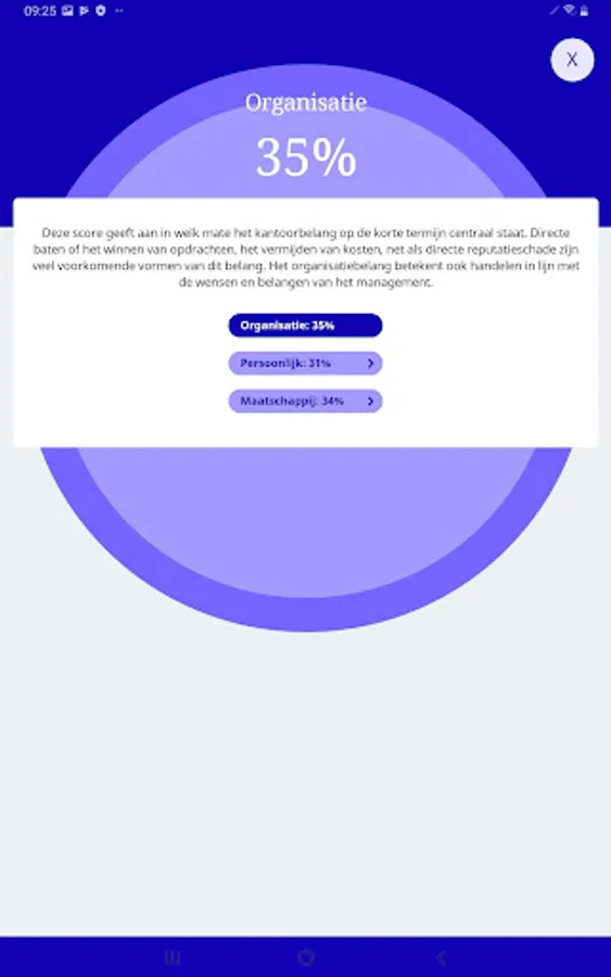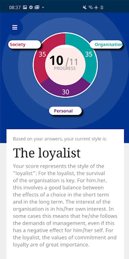 5. Generates one of six user profiles for users based on their scores on three levels: personal interest, organisational interest and public interest, offering more insight in the interests involved in their choices