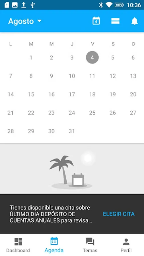 A important date to deliver bills quarter? An appointment with your manager to discuss the new model employment contract for your latest addition? With the agenda of your app you have always controlled the key moments, and you can manage your time more efficiently.