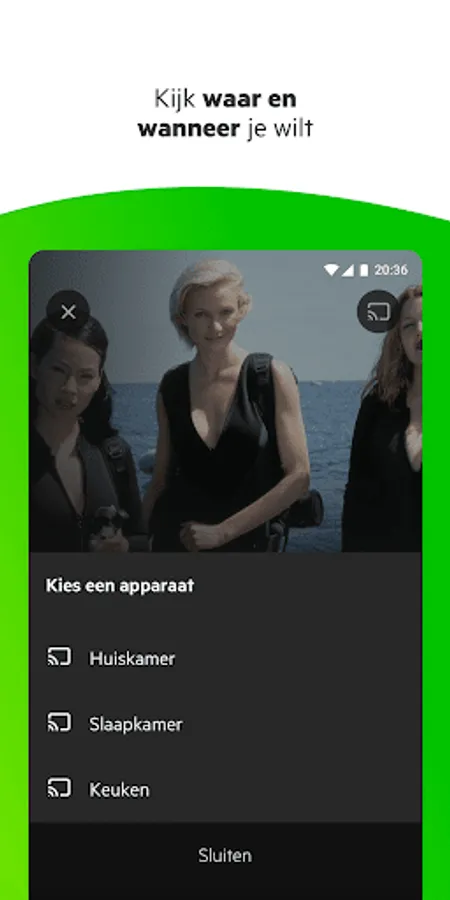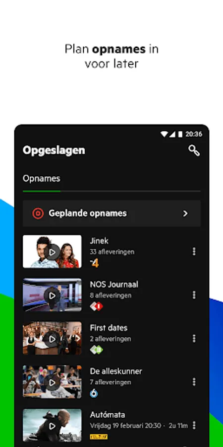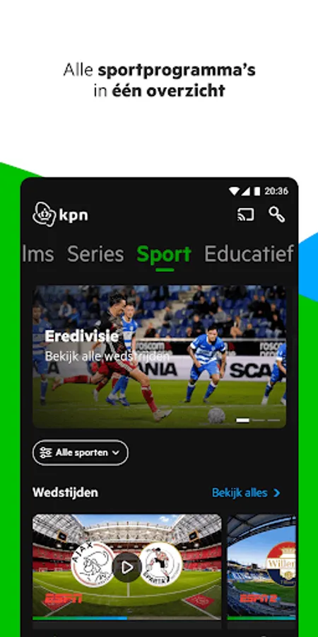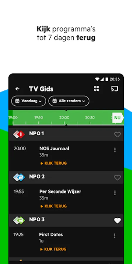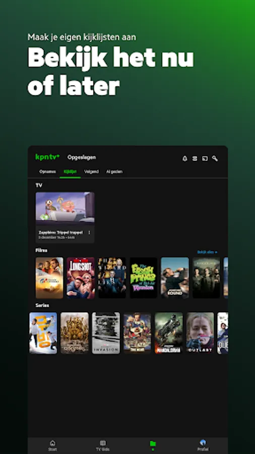 Using the KPN iTV Online app, you can watch your favorite films and programs on your smartphone or tablet. The iTV app offers the following features: