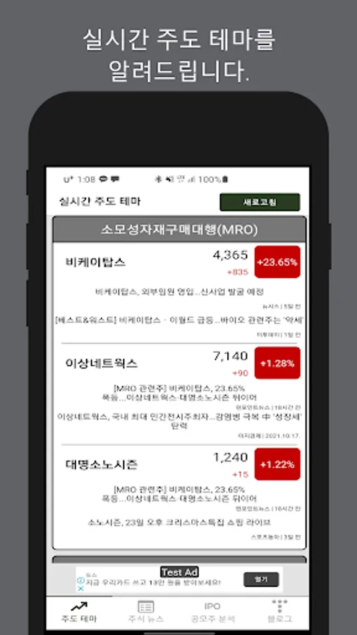 실시간 국내 증시를 주도하고 있는 테마 및 종목을 알려드립니다.