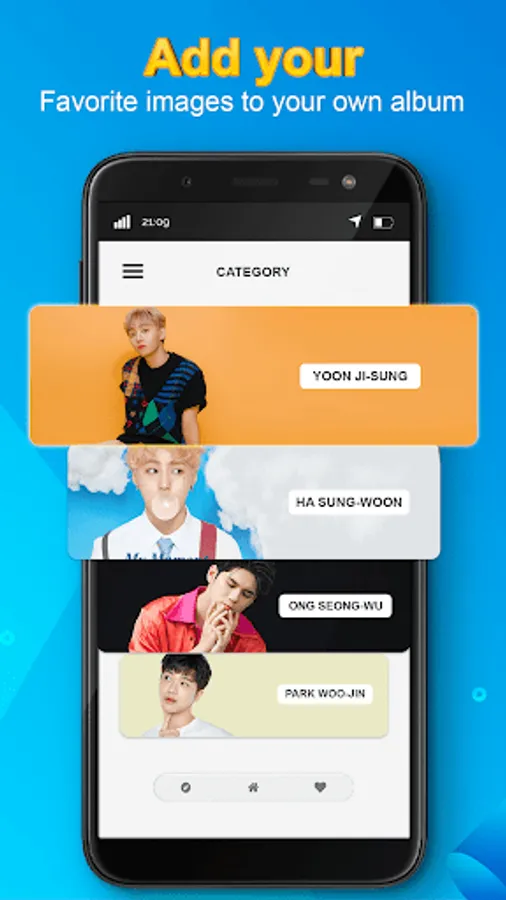 Choose your favorite image and use one touch to set it as your wallpaper and lockscreen. You can immerse yourself in the sweet world of Wanna One boys and watch your favorite idols delight whenever you want with the Wanna One (워너원) Kpop Wallpaper app. What could be more interesting, right?
