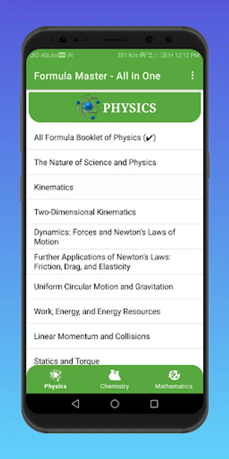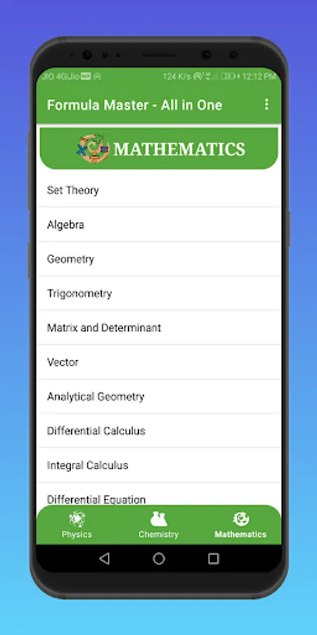 This all in one formula app is an educational app which has all the formulas of Physics ,Chemistry and Mathematics. This app will be beneficial for all the students specially the class 11 and class 12 students. All the formulas are presented in a systematic and comprehensive way so that all can get the formulas. This app can also be helpful for students who are preparing for JEE and NEET examinations.