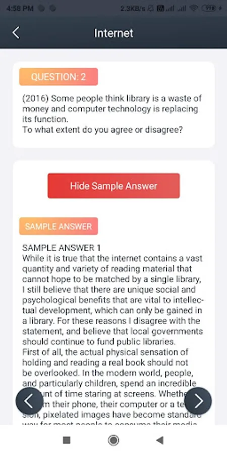 Prepare for IELTS Writing with Free, self-study lessons, samples, and questions on IELTS Writing will provide you with tips and exam information, which will help you successfully prepare for the IELTS test and get the necessary score. Taking mock tests for IELTS exam will help you to boost your chances of getting a higher score. As the application is self-paced, you can select the part you want to focus on to prepare for the IELTS Writing test for better scores. You can use this application unlimitedly with no hidden costs.