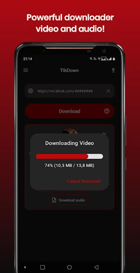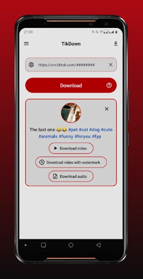 • Copy the video link and paste it in the TikDown app. Wait for the URL to process and download whatever you like!