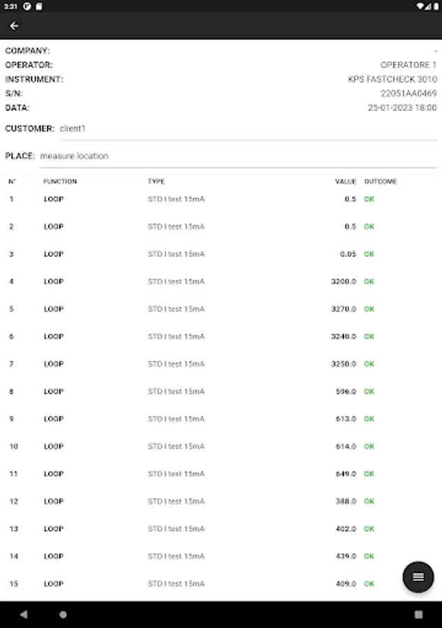 The KPS FASTCHECK APP is a professional software that allows you to create Reports in pdf or csv of the measurements made with the KPS FASTCHECK3010 instrument. The Reports will be saved on your Smartphone and can be shared. Exporting in .csv will allow you to customize the Reports.