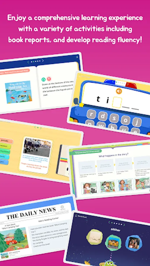 - In the “Report” and “My Page” sections, students can monitor their learning progress, review word lists, access reading history, and explore their portfolios.