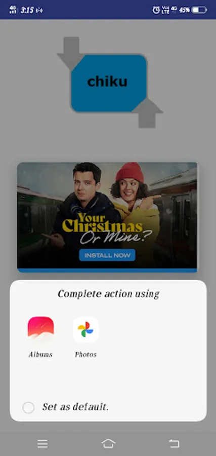 Chiku is a Photo Editing Application from KPS_Entertainment. Here, You can Edit your Image and Editing Image will saved in Chiku Folder into Your Mobile Phone.