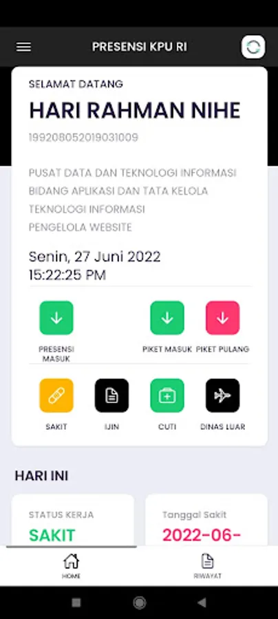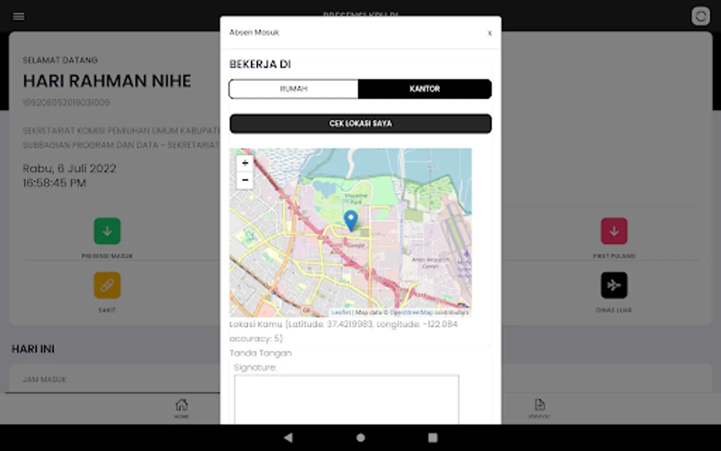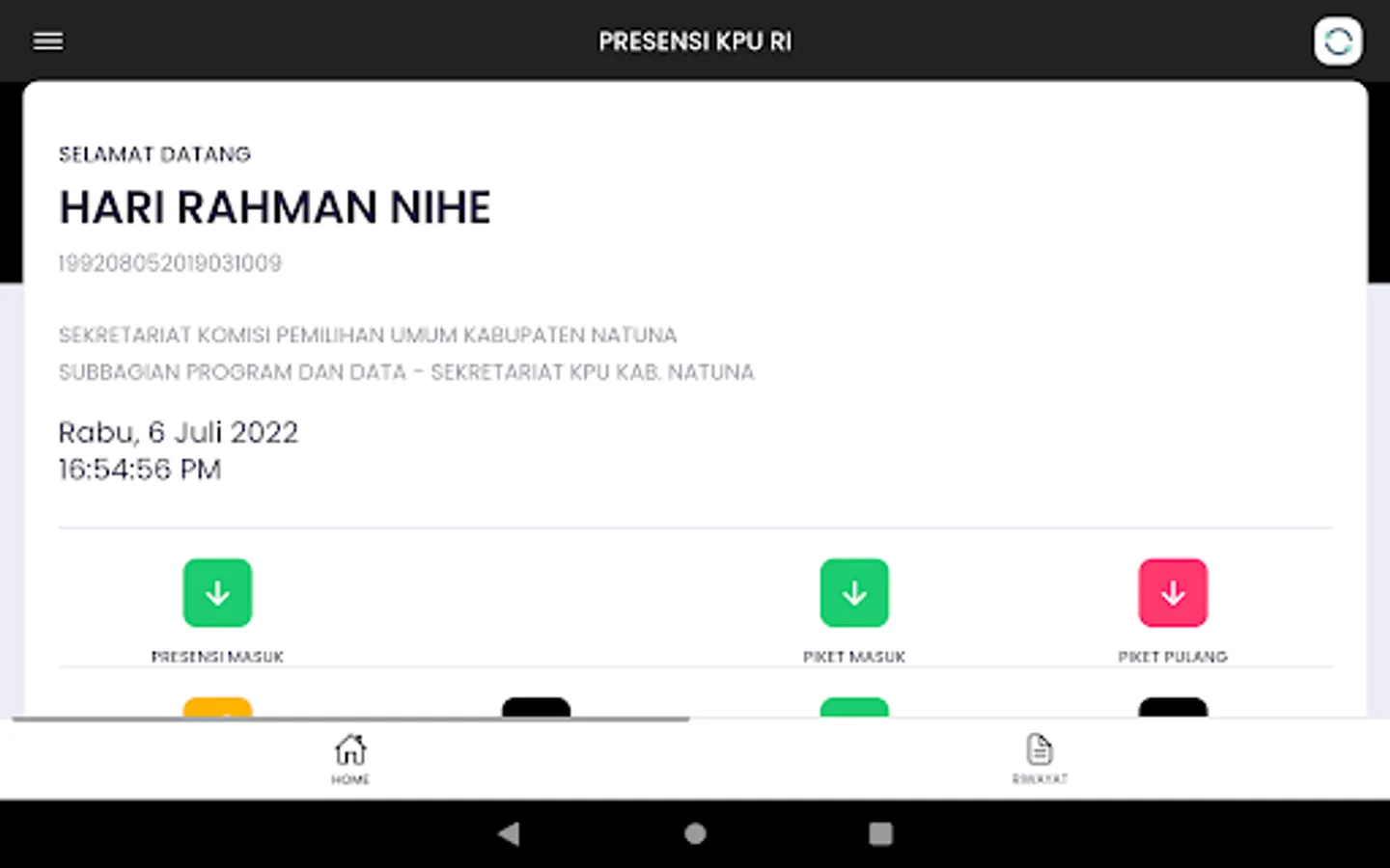 The KPU Presence is a system for recording work entry and exit within the KPU Secretariat. Intended to improve the performance and discipline of KPU Secretariat employees.
