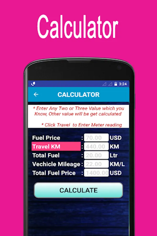 5. Essential Calculator : you can calculate ( mileage, travel km, fuel price, total fuel price, Total fuel )