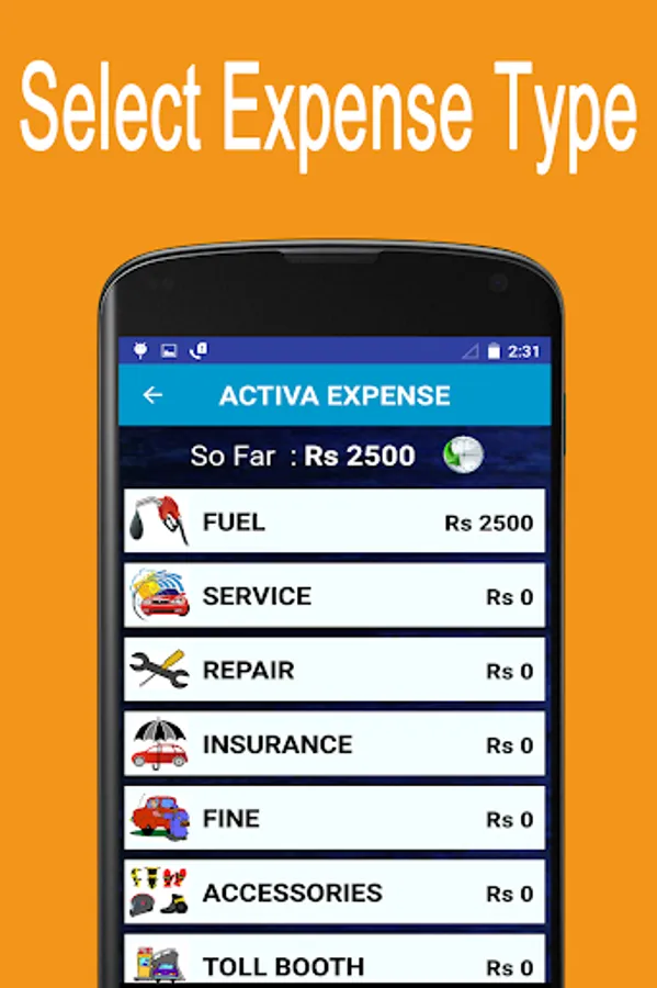 Using this Application, you can add and track the Expense by category ( fuel cost,, service cost, repair cost, insurance cost, fine cost, accessories cost, toll cost).