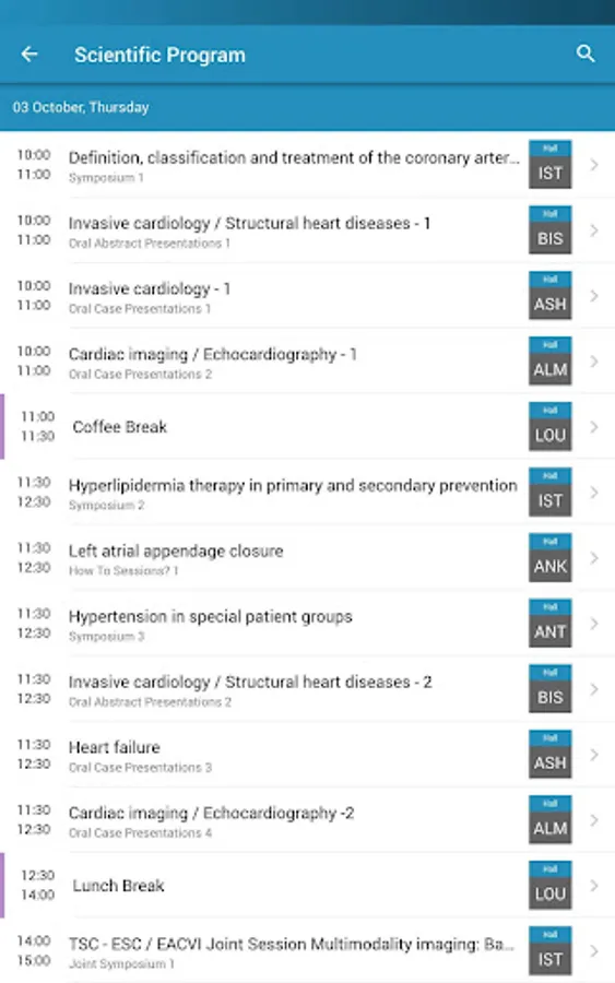 • Access any information by searching speakers, halls, times and many more keywords even partials thanks to our innovative search module;