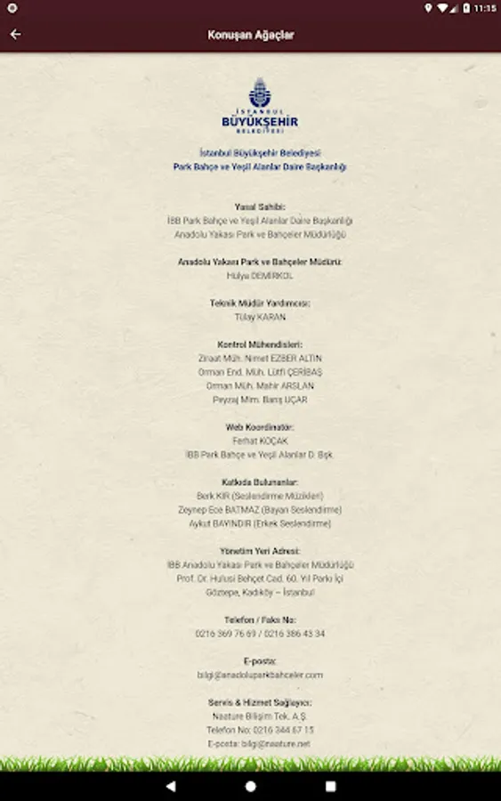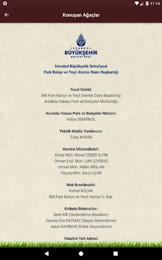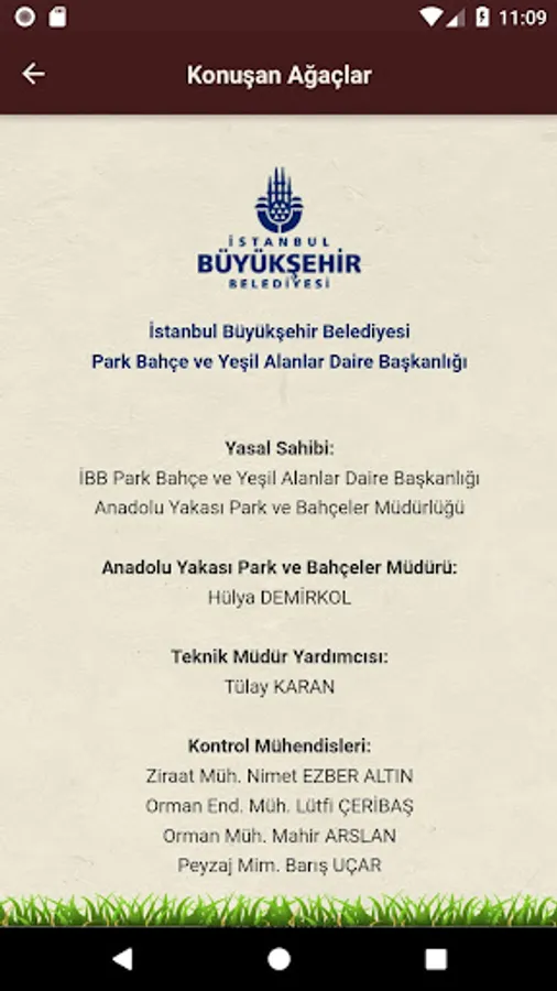 Istanbul Metropolitan Municipality, Department of Parks and Gardens and Green Areas, Parks and Gardens Anatolian Side of services offered to our people by the Directorate Talking Tree app ...