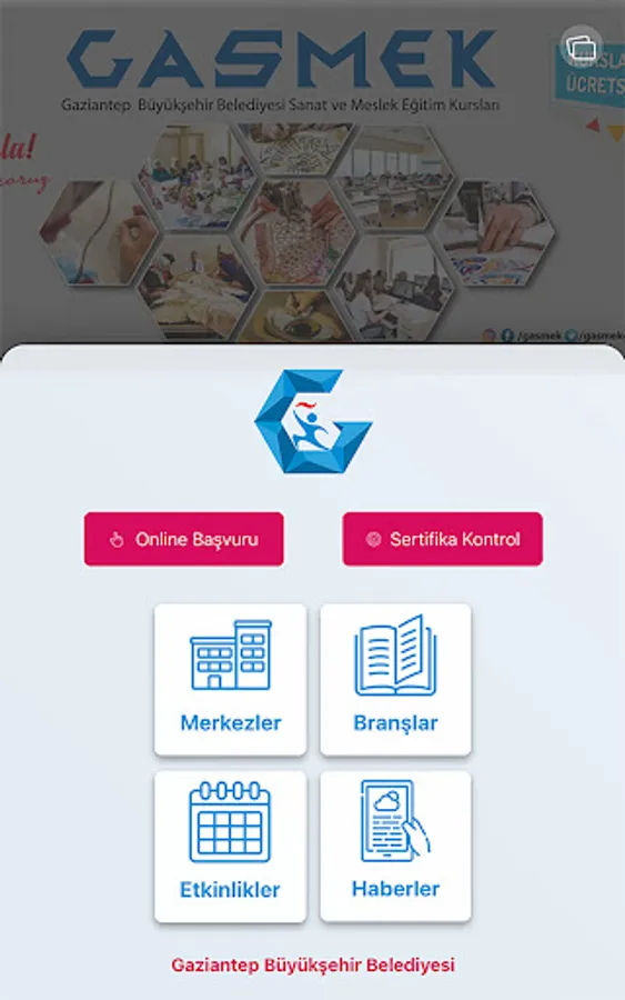Through the corporate mobile application of GASMEK Gaziantep Metropolitan Municipality Art and Vocational Training Courses;