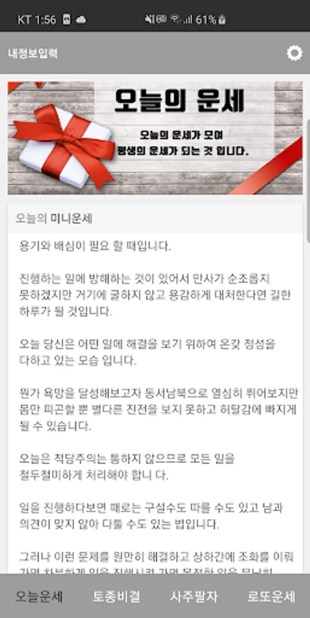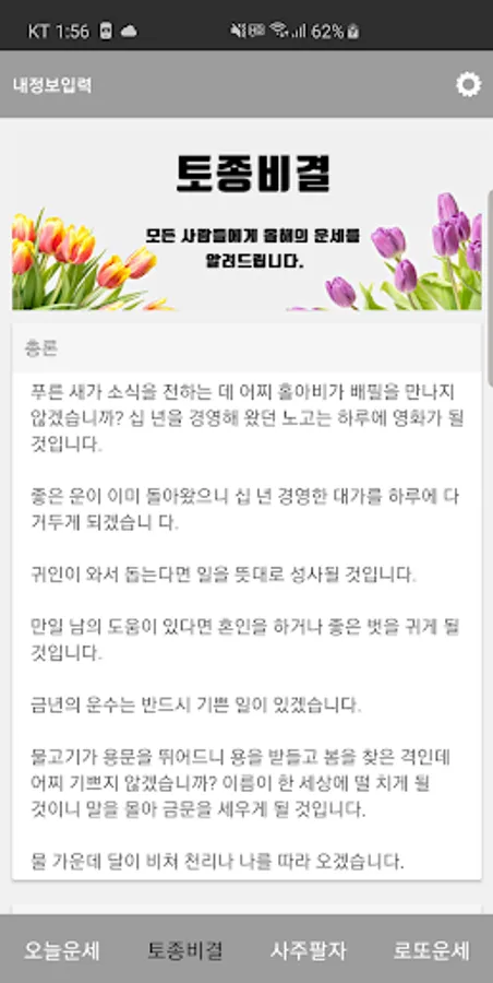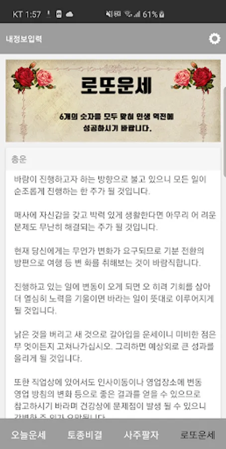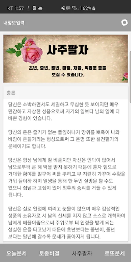 You can see the first year, middle age, last year, love, wealth, and job luck.
