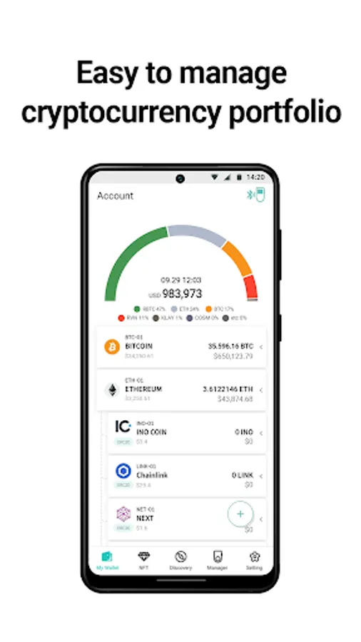 D’CENT Wallet allows you to safely store your cryptocurrencies and conveniently access blockchain-based services such as DeFi and game item management. With a single D’CENT Mobile App, you can link with a hardware wallet or use it as a software wallet without hardware.