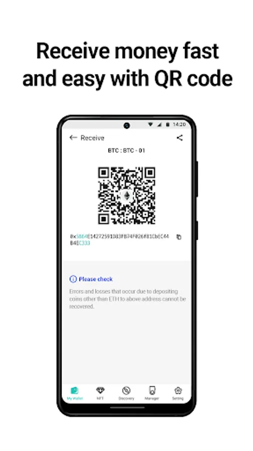 3. Cryptocurrency address and QR code is printed on the card surface, so you can easily receive cryptocurrency.